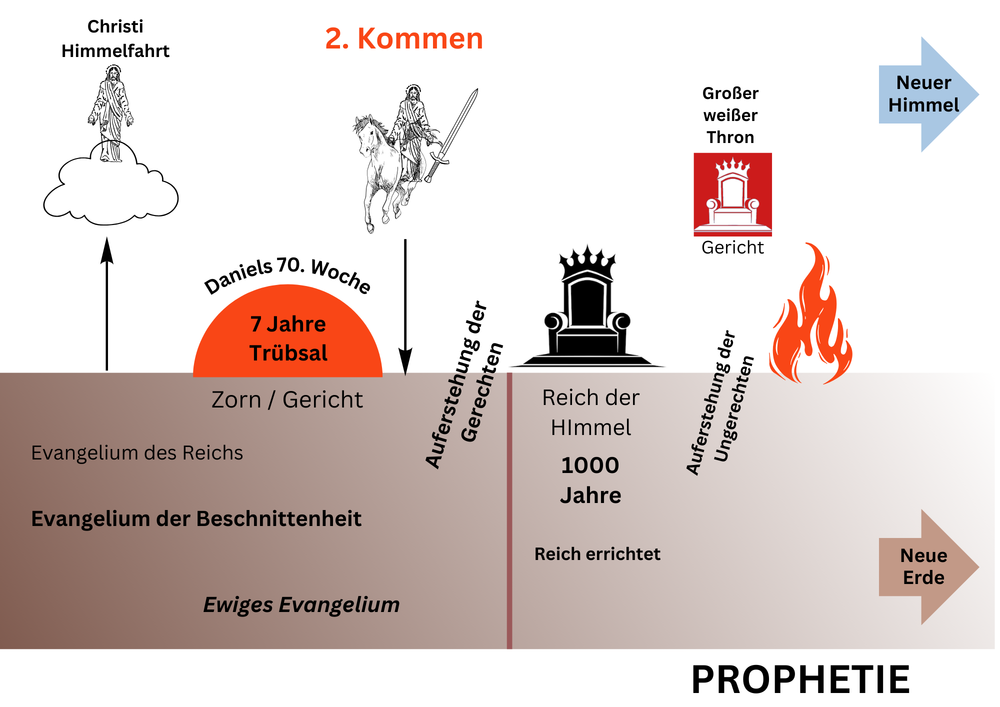 Was nach der Auferstehung der Gerechten im prophetischen Programm folgt, ist auch klar: das Reich der Himmel wird für Israel errichtet und die Königsherrschaft liegt von jetzt an auf Jesu Schultern. Die einzigen, die nach der Auferstehung der Gerechten im prophetischen Programm am Leben sein werden, sind Errettete, heilige Kinder Gottes, niemand sonst wird zu diesem Zeitpunkt auf Erden sein. Eine Verwechslung dieser beiden Auferstehungen bzw. die Behauptung, es gäbe nur eine Auferstehung der Toten, ist demnach falsch.